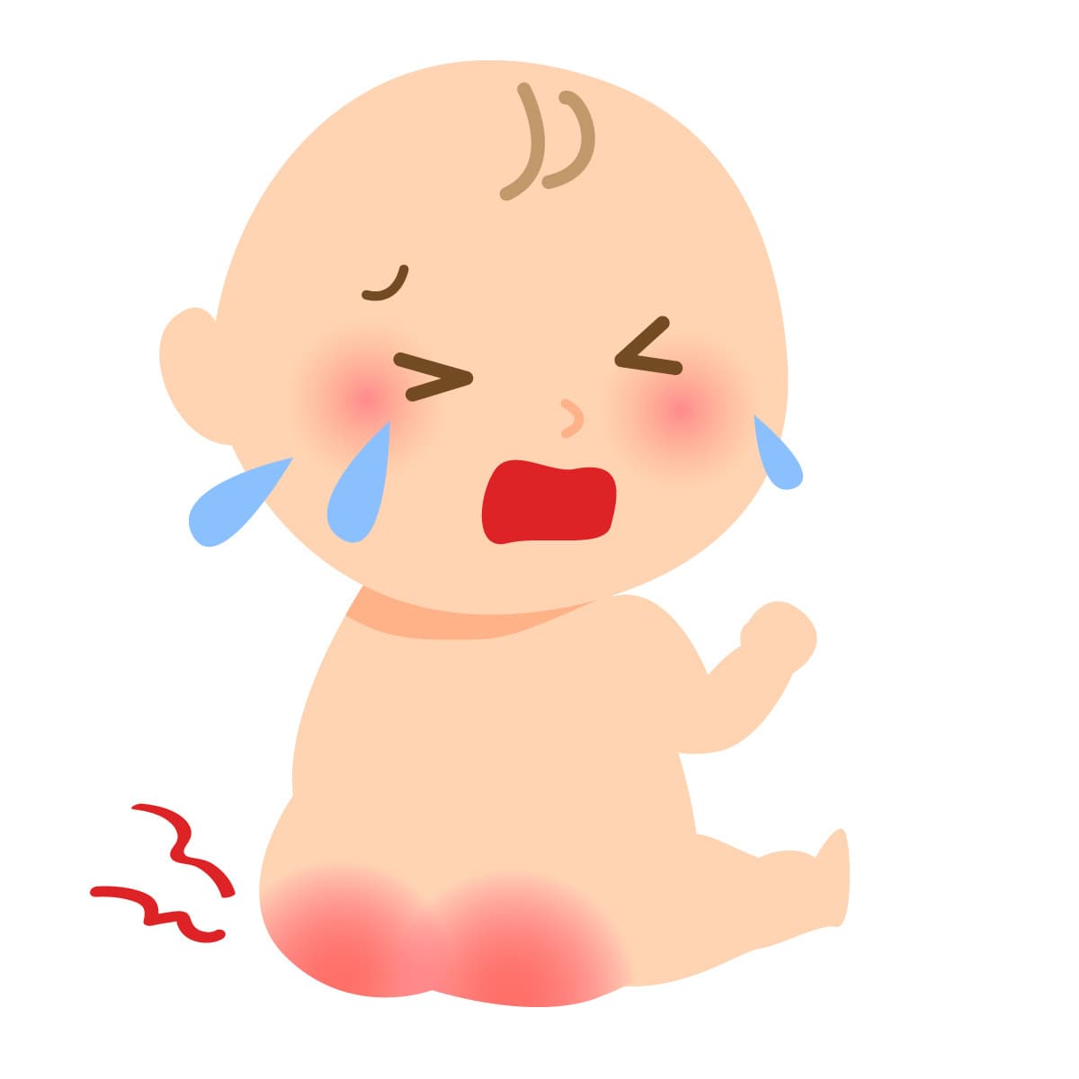おむつかぶれ(おむつ皮膚炎)は、おむつの中の湿気・摩擦・便や尿による刺激で起こる皮膚の炎症です。