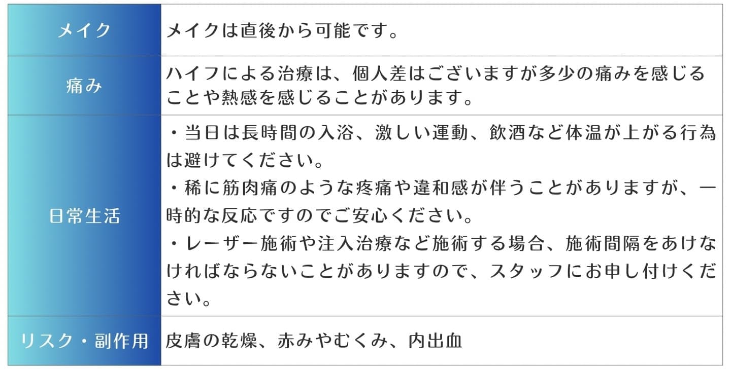 超音波を線状に照射可能なハイフの治療により、SMASにまでアプローチすることができます。