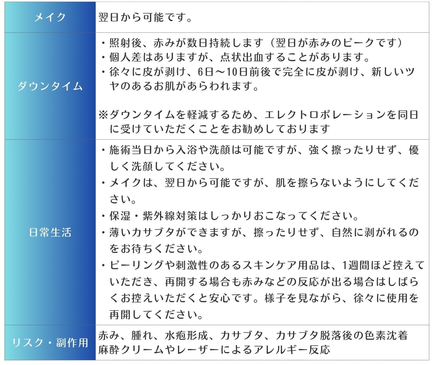 効果が非常に高い分、ダウンタイムはありますが、大幅な肌質改善が期待できます。