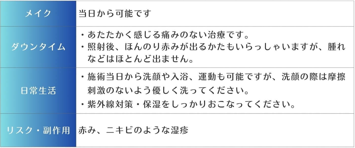 ロングパルスでハイパワーでありながら、皮膚への負担は少なく、皮膚や毛穴の引き締めの効果が期待できます。