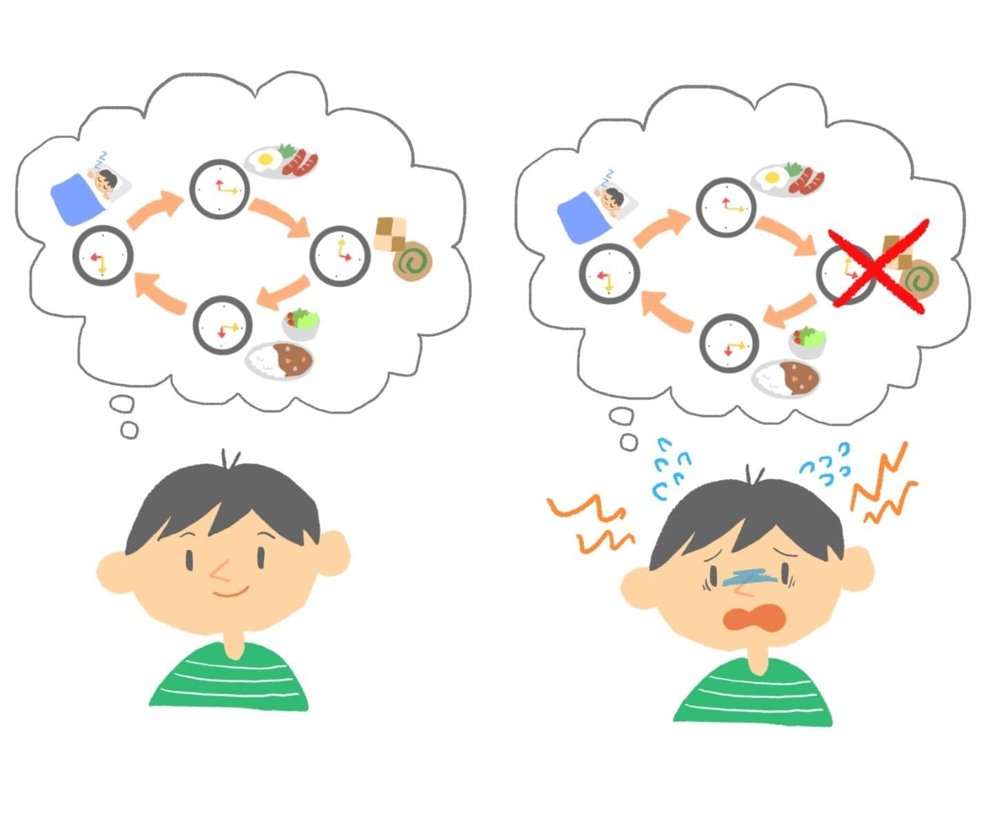 興味・活動の偏りや同一性保持(強いこだわり、予定変更が苦手) |