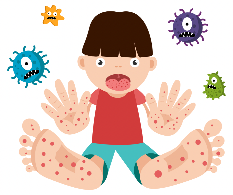 手足口病は、コクサッキーウイルスやエンテロウイルスによるウイルス感染症で、乳幼児〜小学生に多くみられます。